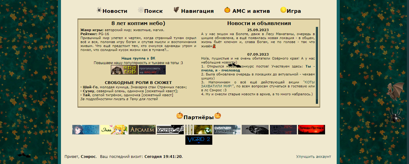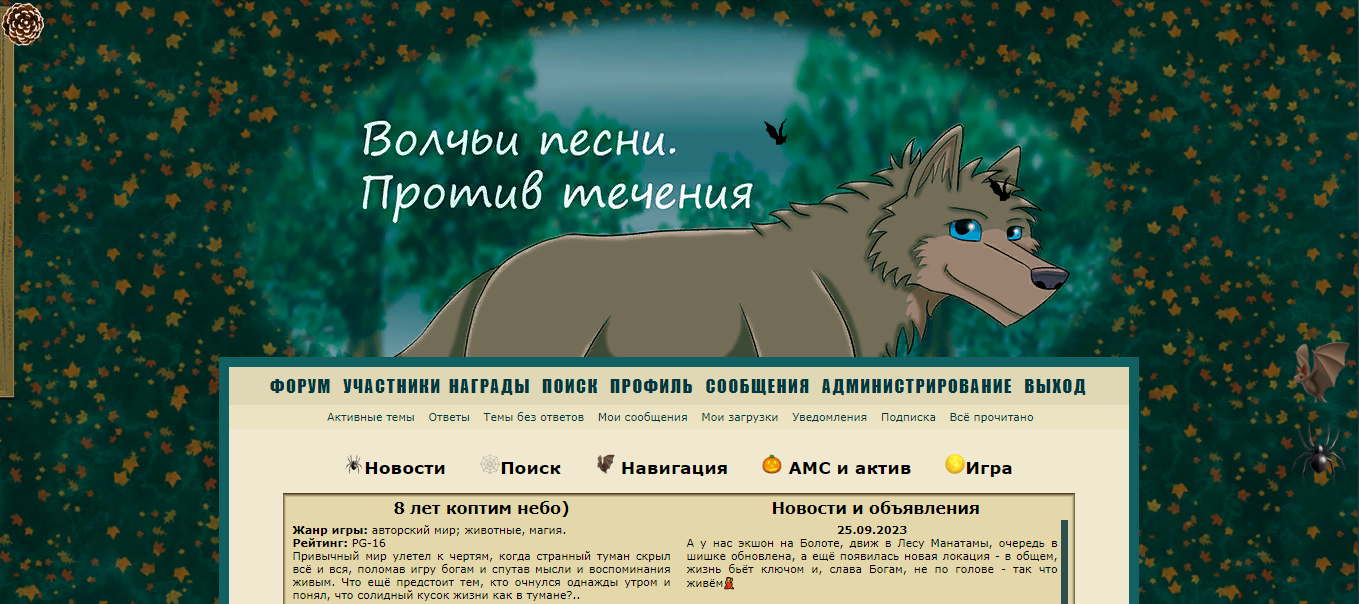 К празднику сменили фон и картинку в шапке (на обеих версиях дизайна - переключатель в кнопке "настройки" в меню навигации), добавили летающих призраков при наведении на название форума в шапке и стилизовали одну из новостных плашек:Расскажите немного о форуме: