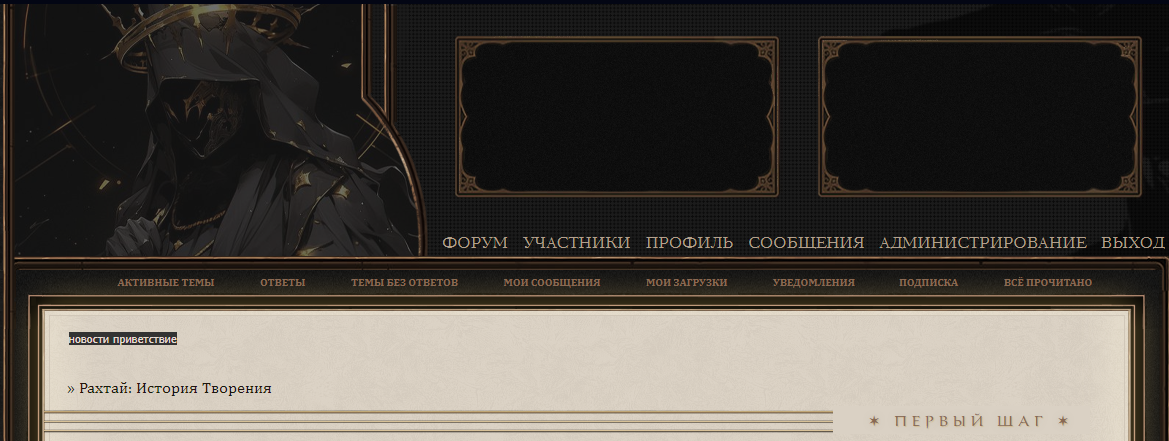 Я создал таблицу с двумя ячейками с текстом (выделенный), который хочу разместить в блоках вверху (над строкой "Форум, Активные участники и т.д.". Если начинать двигать контейнер, где расположен текст, начинает двигаться вся картинка. Прошу помочь с данным расположением.