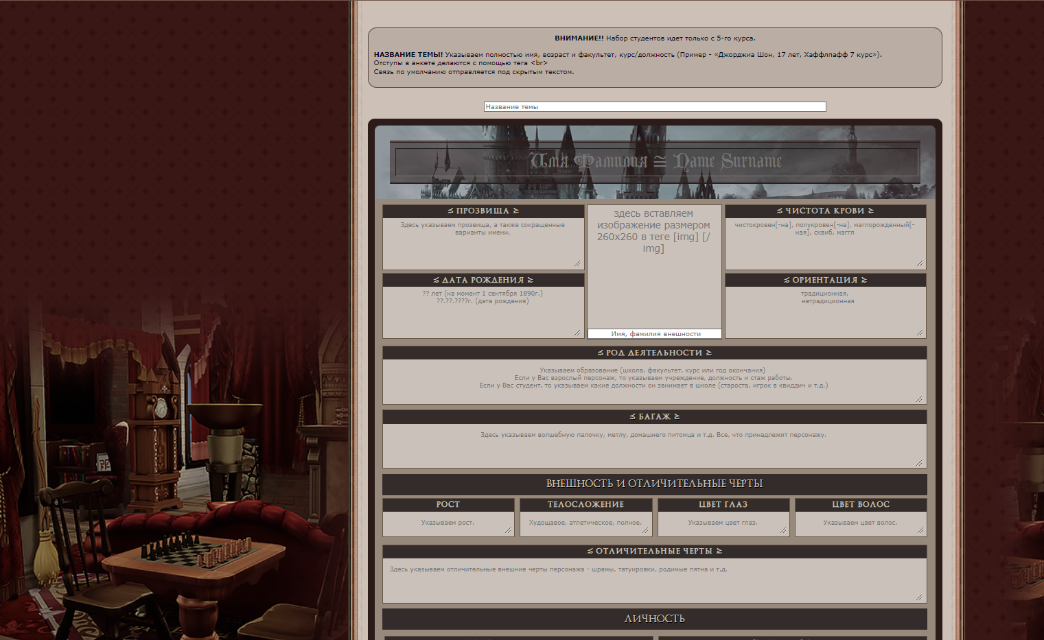 Вы здесь » ForumD.ru - Дизайн, графика, скрипты, техническая поддержка для форумов и сайтов » Бесплатная техническая поддержка » Шаблоны анкет